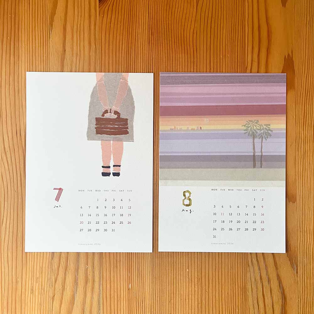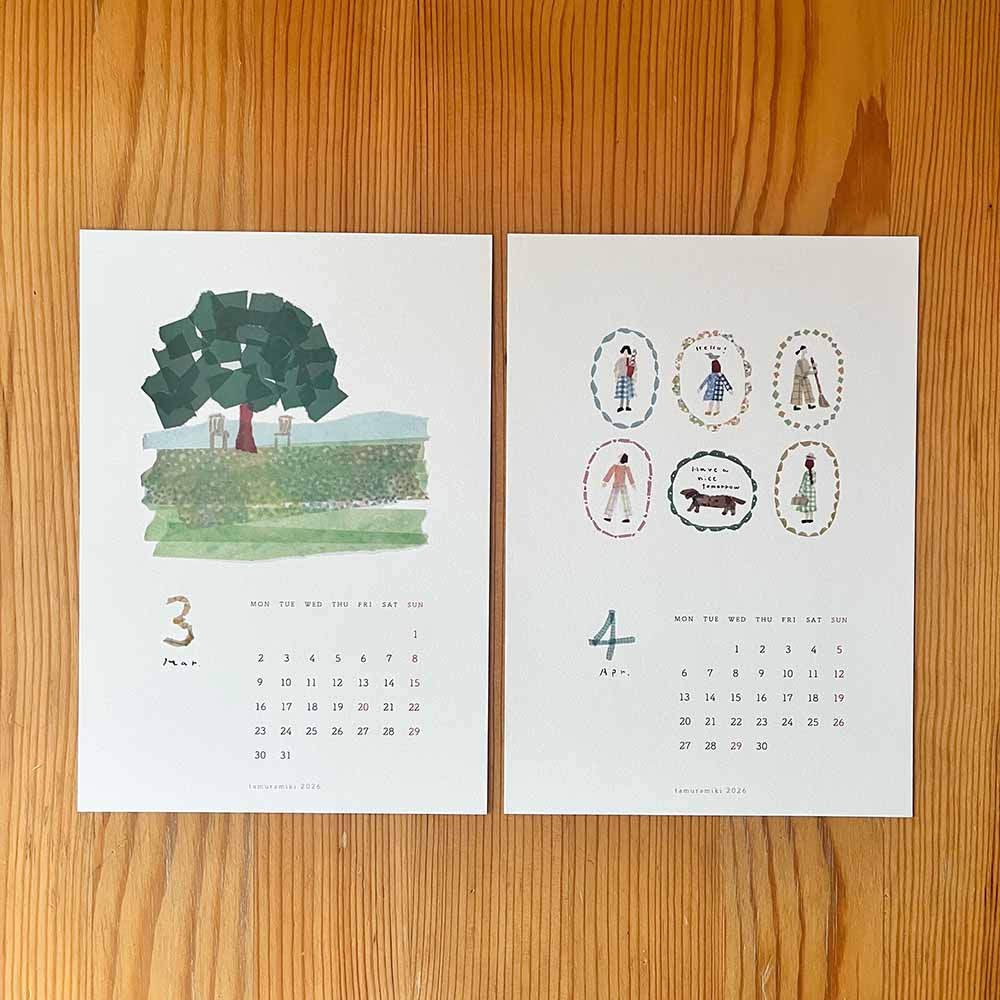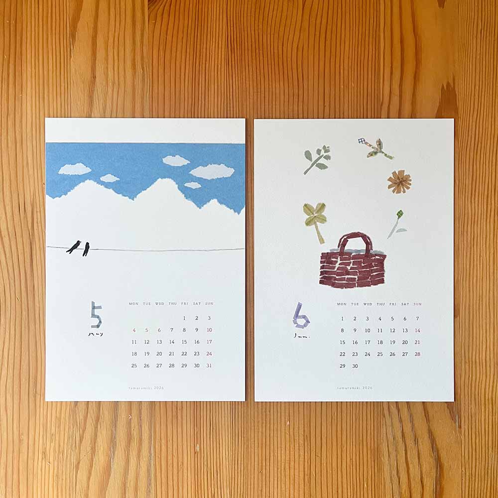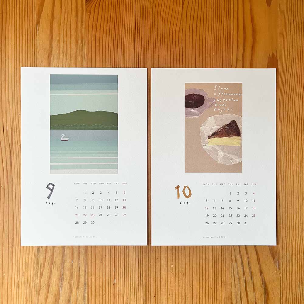 クリップやマスキングテープを付けて壁掛けにしたり、 スタンドに置いて机の上にちょこんと、 A5サイズ用のフォトフレームに入れて飾ったりも。 楽しみ方いろいろなカレンダーです。